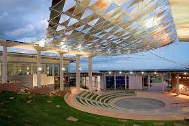 The building includes a rainwater-harvesting installation, solar energy and green roofs planted with indigenous plants from the region. The permaculture food and medicinal garden, situated in the heart of the school, provides sufficient vegetables and fruit for the school’s needs. The medicinal garden serves as a source of medicinal plants for the community.